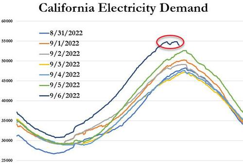 But then as Bloomberg notes, California officials sent an emergency text message around 5:45 warning approximately 525,000 homes and businesses that if they don't conserve power immediately, "power interruptions may occur."