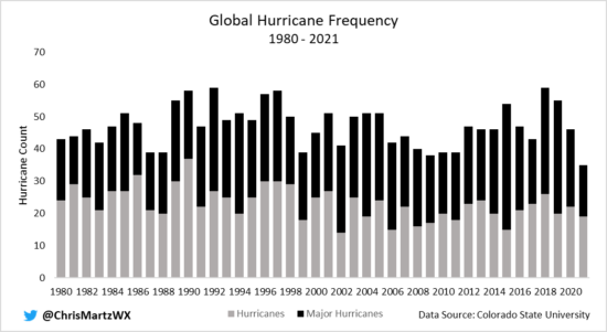 Global Hurrican Count since 1980 (the satellite age) chart and History of Florida Hurricanes chart